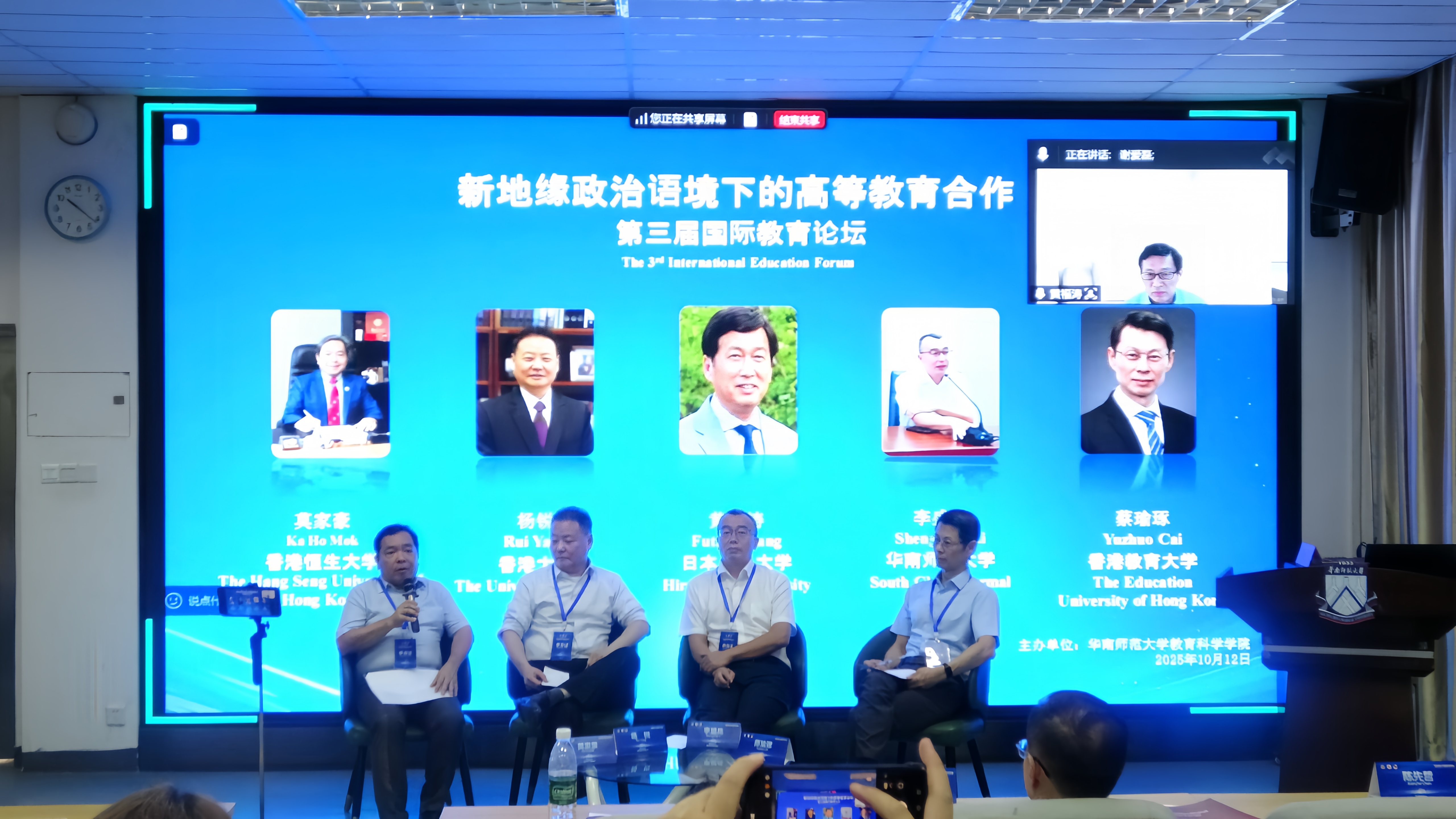 翌日10月12日,他在華南師範大學教育科學學院第三屆國際教育論壇,主題為「新地緣政治語境下的高等教育合作」上發表有關「地緣政治中的角色探尋:香港與中歐學術合作」的報告。論壇彙聚來自世界多所知名大學的專家學者,搭建一個跨文化、跨學科的交流平臺,深入探討國際學術合作模式的發展趨勢。