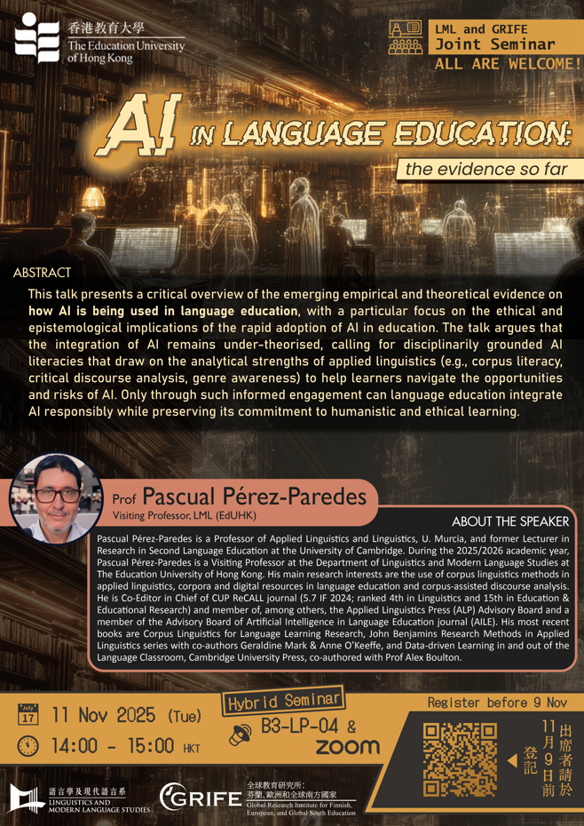 Register link If you are interested in attending the seminar, please register on or before 9 November 2025 to receive the Zoom link: https://eduhk.au1.qualtrics.com/jfe/form/SV_08N4hQrkdosLEyy